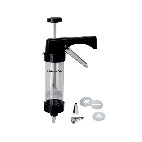 Réalisez facilement des biscuits, sablés et décorations pâtissières grâce à cette presse à gâteaux.